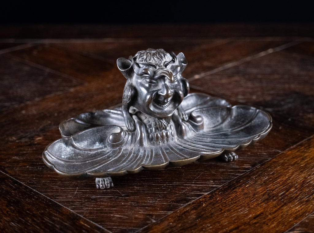 An intriguing and substantial late 19th century bronze devil inkwell.