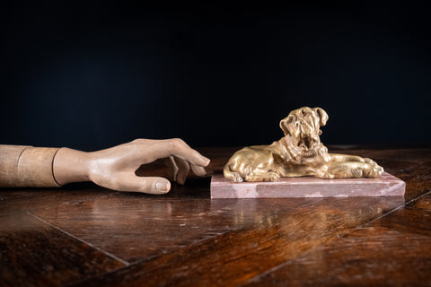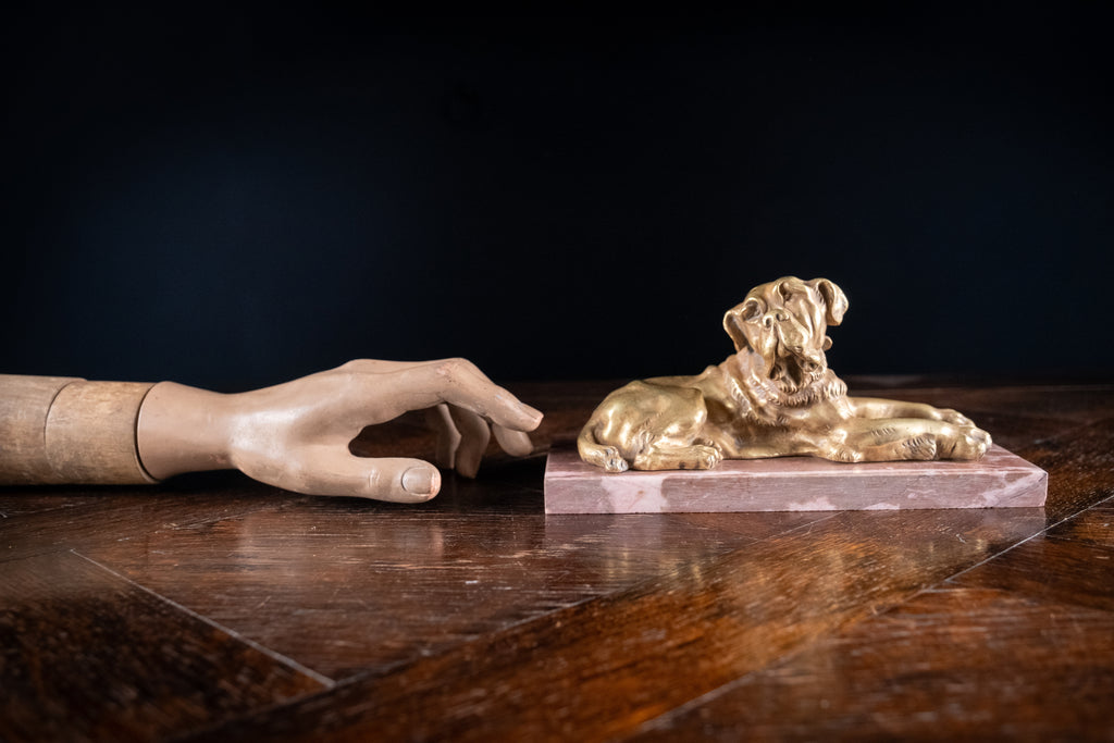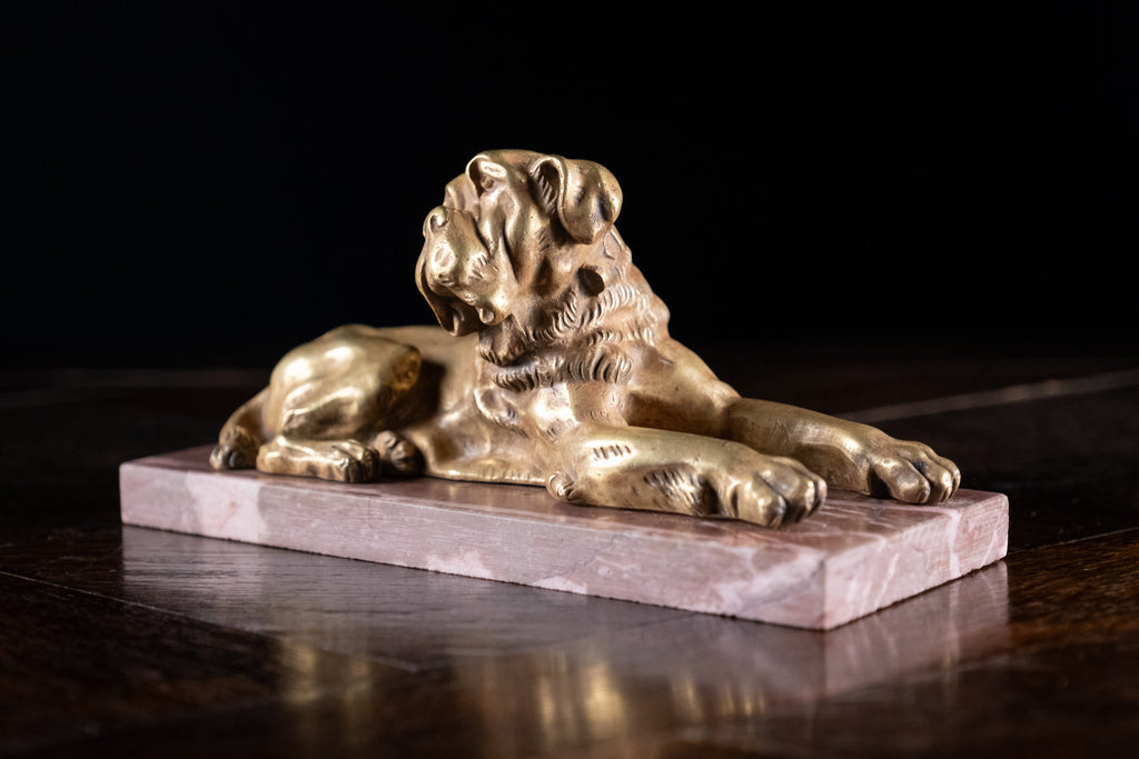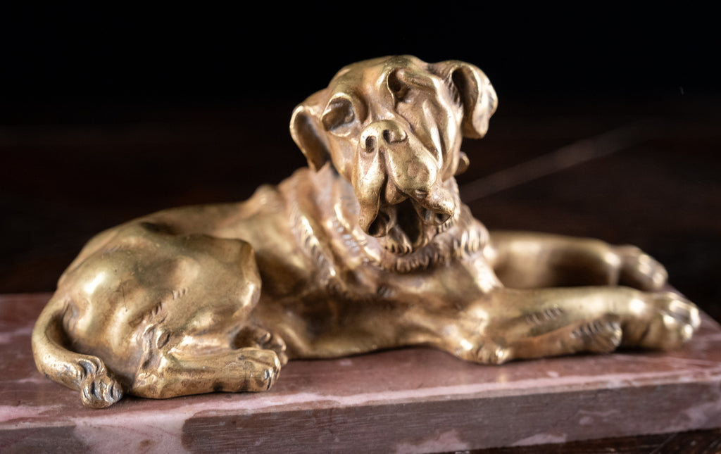 A 19th century gilt bronze mastiff on a veined marble base of good proportions. Probably French School. c.1880.