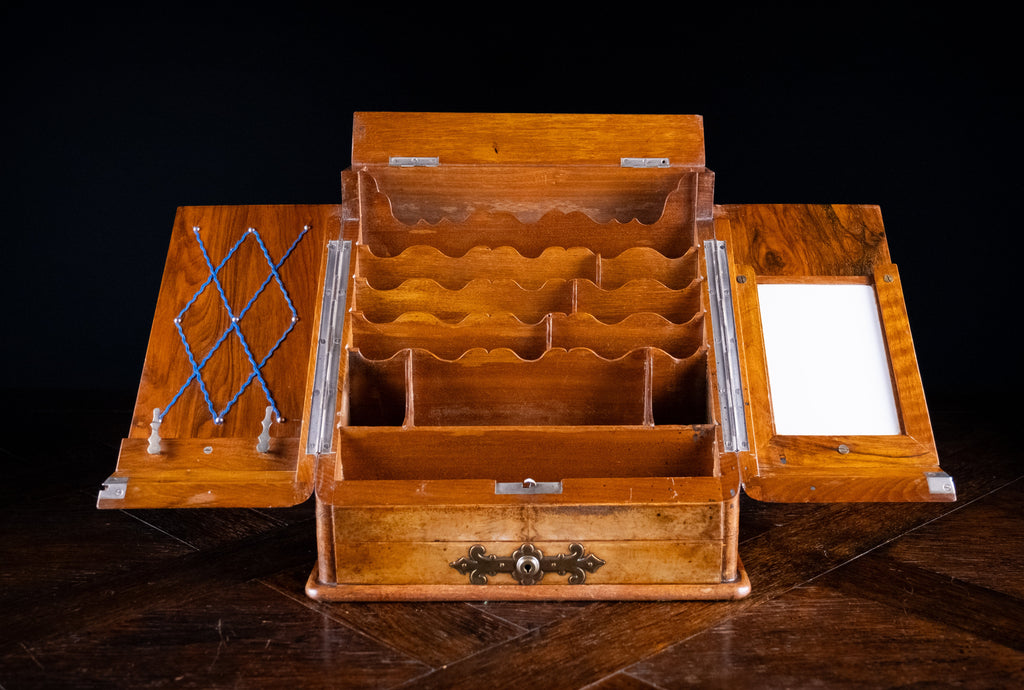 A fine walnut and brass stationary cabinet, c.1880.