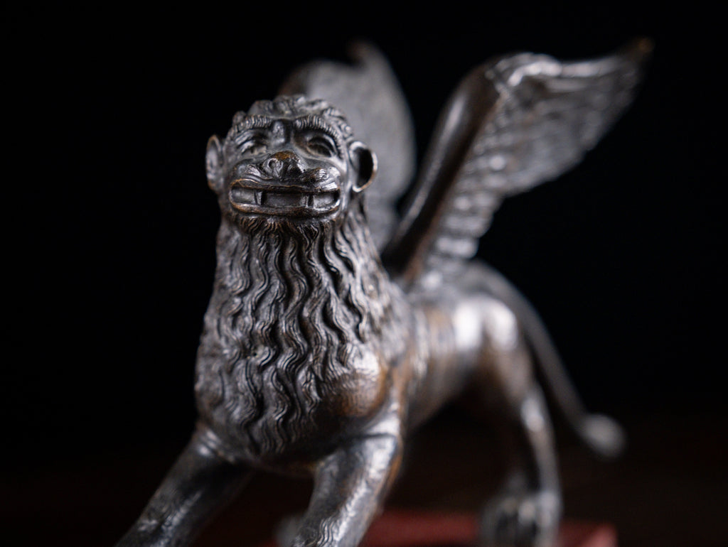 A handsome Grand Tour bronze depicting the Lion Of Saint Mark upon Rossa Francia marble base, c.1880.