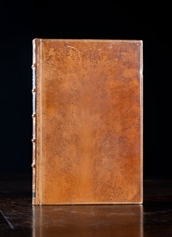 Fully bound in a tree calf binding with five raised bands to the spine, deep brown leather title panel and green leather author and date panels. The boards remain firmly affixed and the whole exterior remains in a very good condition throughout.