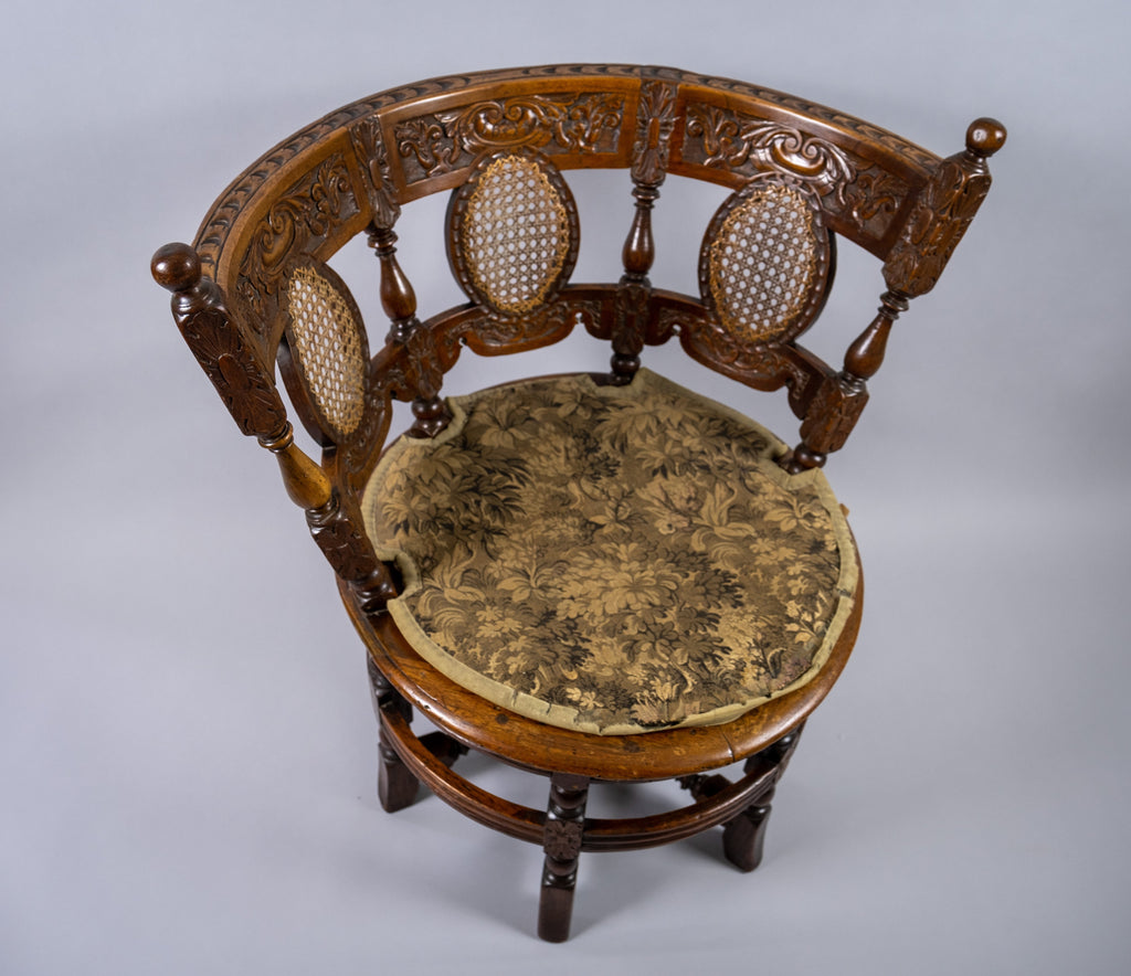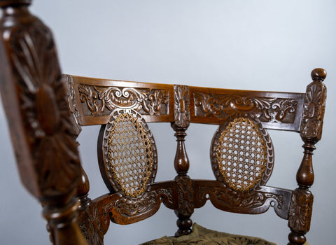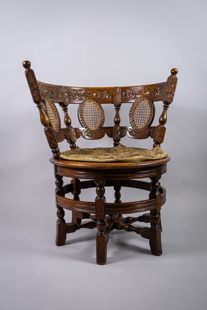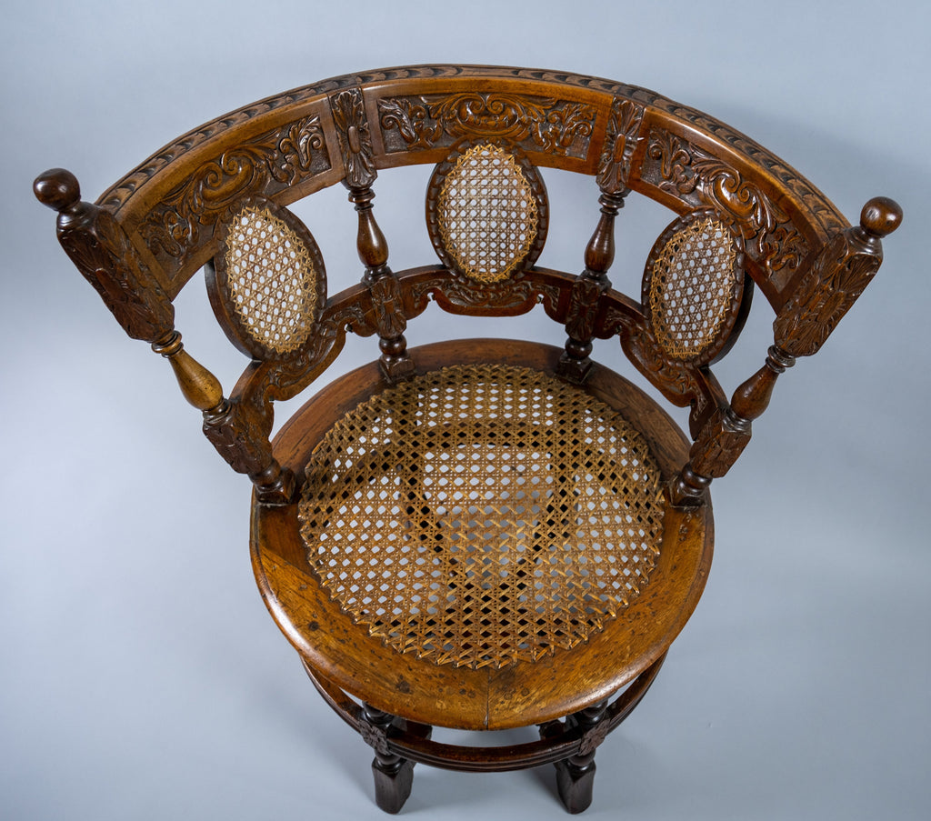 A stunning 19th century Dutch colonial carved oak burgomeister chair, together with its original custom fitted cushion.
