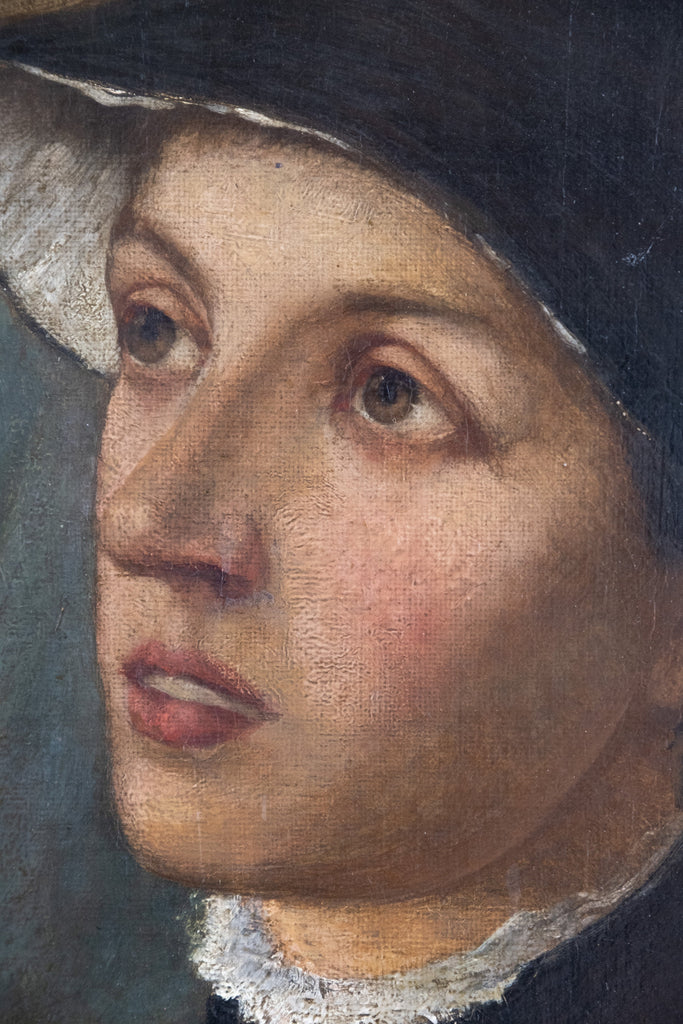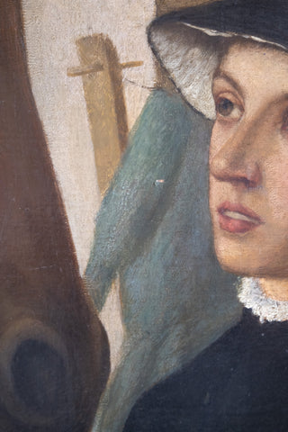 There are some small paint losses to the work and superficial splits to the frame (please see photographs). The work nonetheless remains striking.