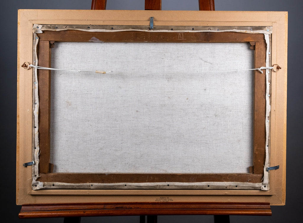 The work demonstrates excellent use of colour and light to the landscape whilst the sheep and lady are naively portrayed. The work is housed in a later maple frame. The frame is stamped 'Gallery 23, London' verso, however as the frame is later, it cannot be said with any certainty that this work that was displayed within it.