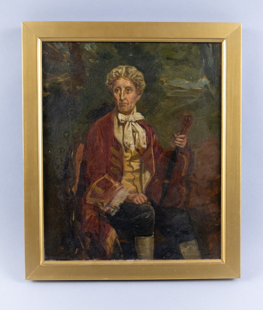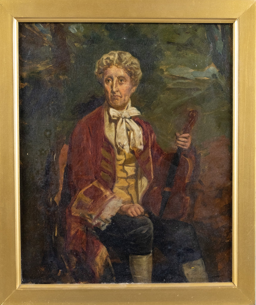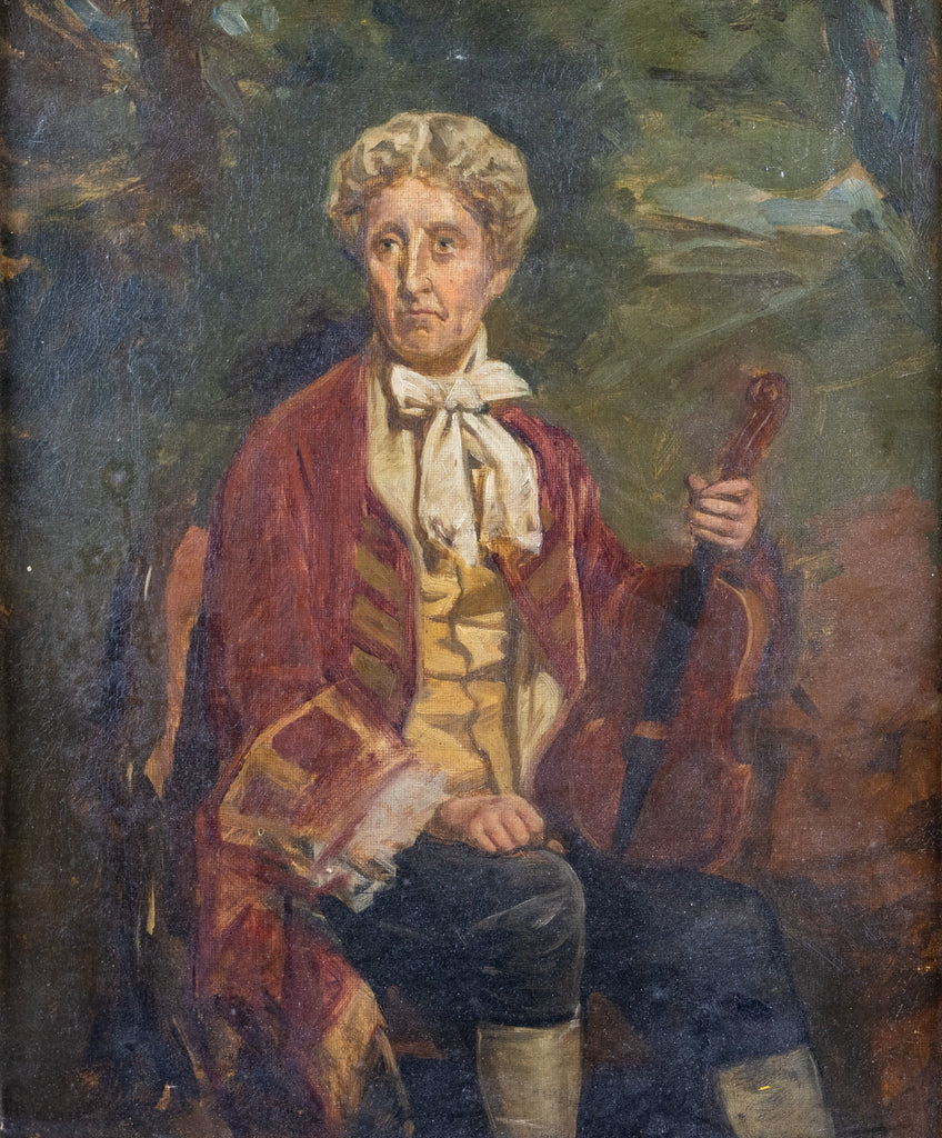 An early 19th century English School oil on canvas portrait of a seated violinist.