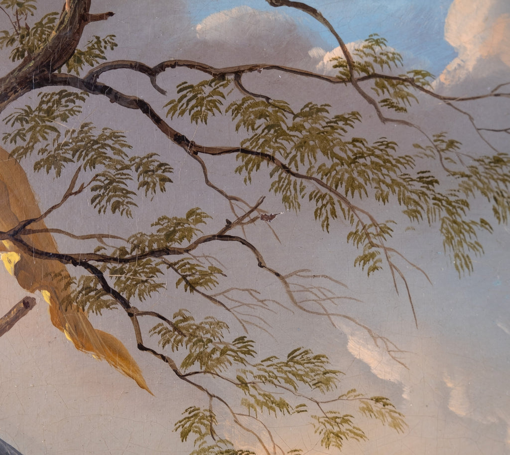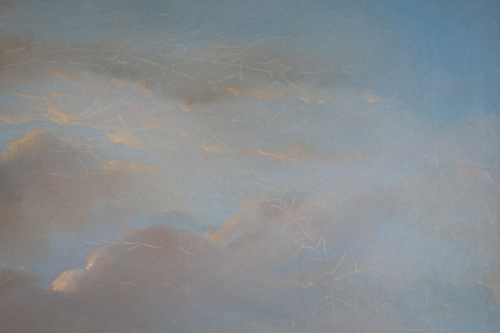 The work has undergone sympathetic restoration and re-lining. Craquelure remains evident throughout upon inspection, predominantly to the sky, and there is one small area of paint loss amongst the branches of the tree (please see photograph).