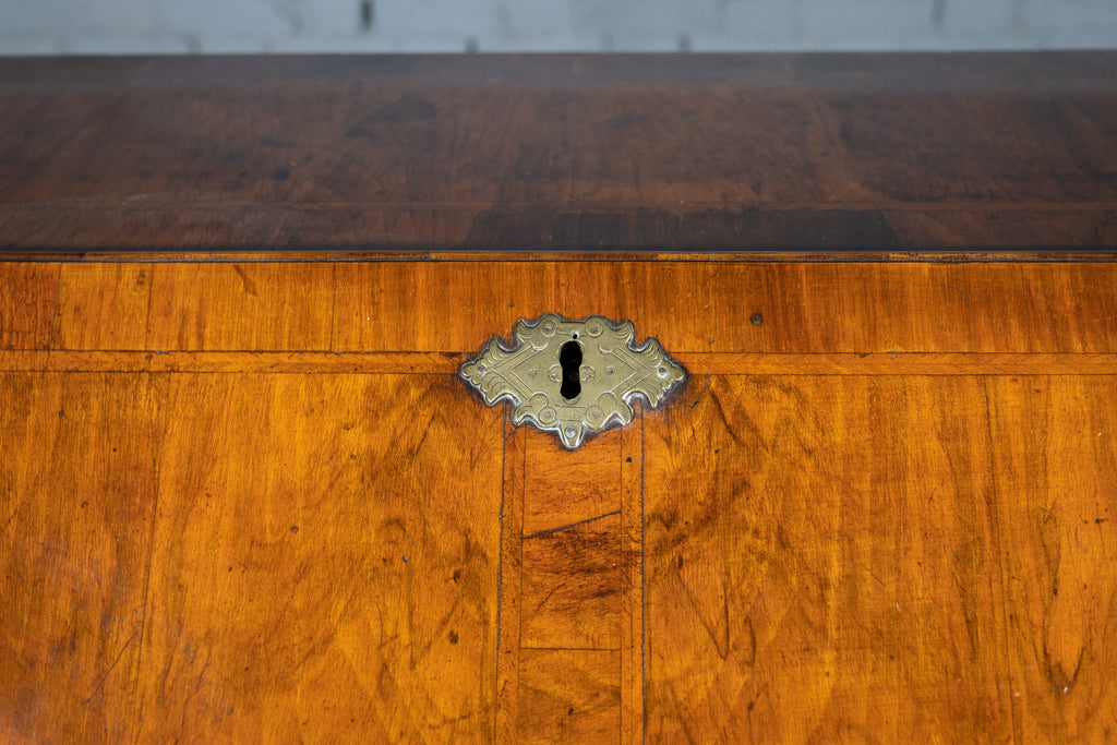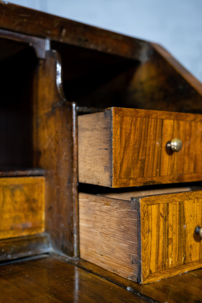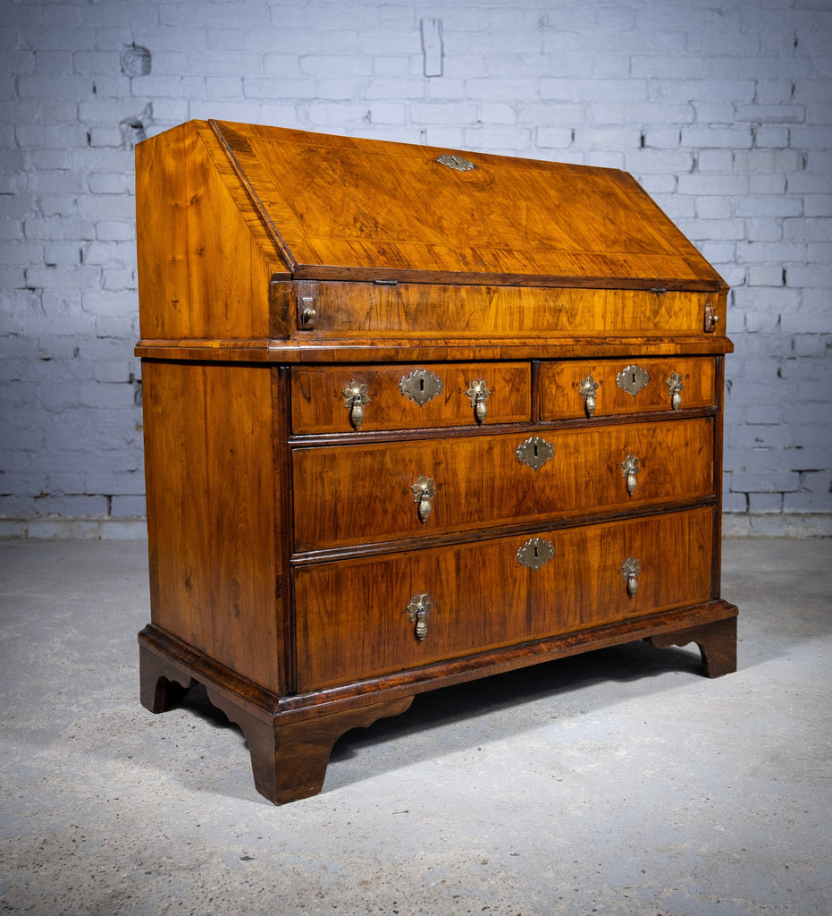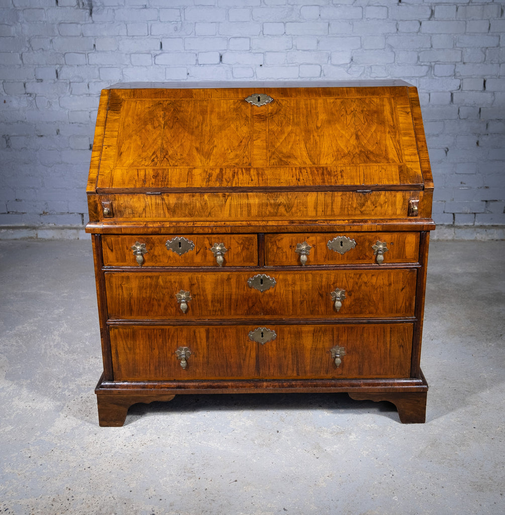 An attractive George I walnut and featherbanded bureau, c.1720.
