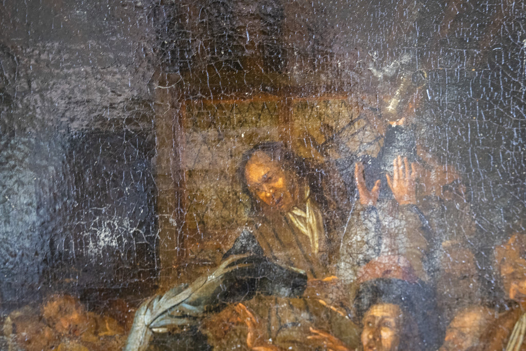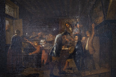 The work is exceptionally well painted, evidenced in the way in which light falls from the window into the scene and the delicate and proportionate detail of each patron throughout.