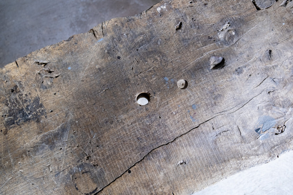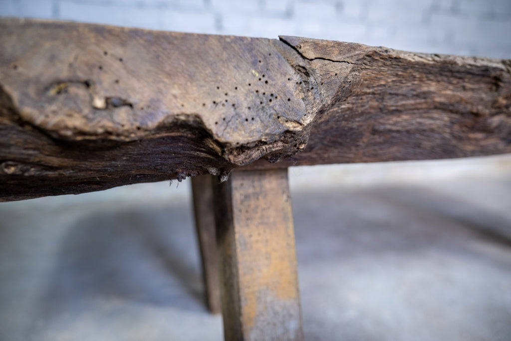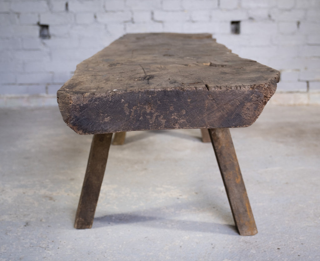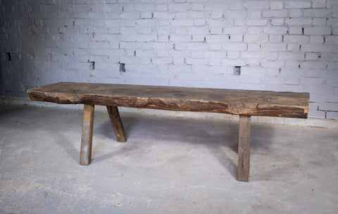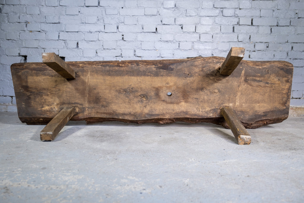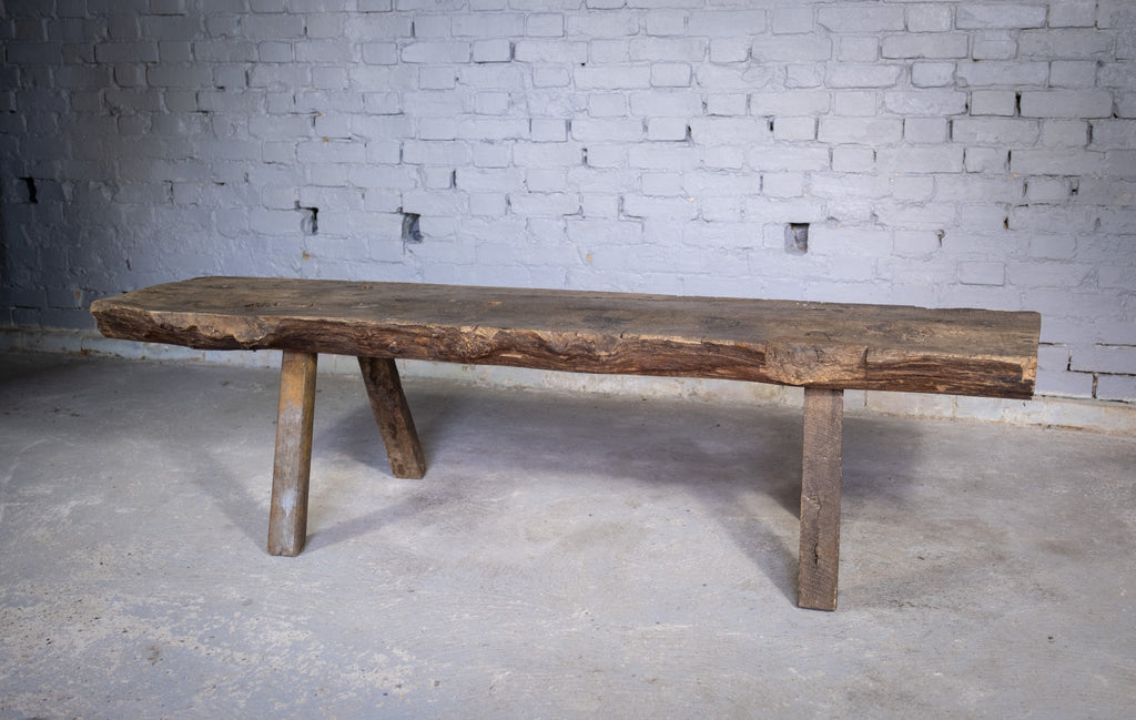 A wonderful and very substantial early 19th century single slab oak pig bench of large proportions, c.1830.