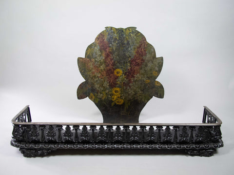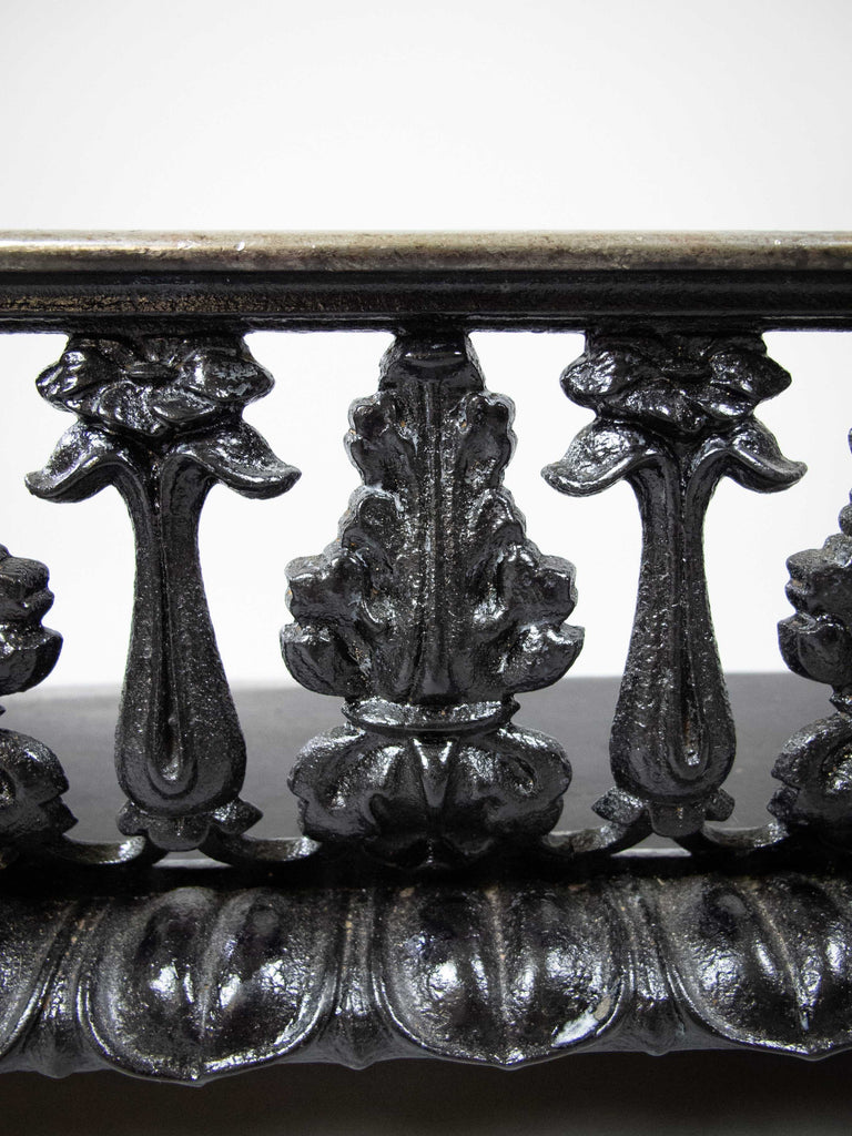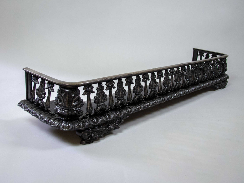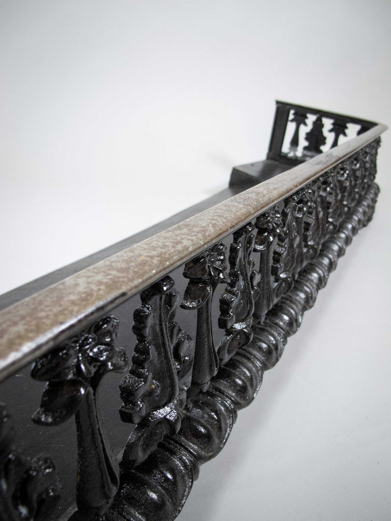 A very attractive and substantial Victorian cast iron fire kerb of pierced foliate design.