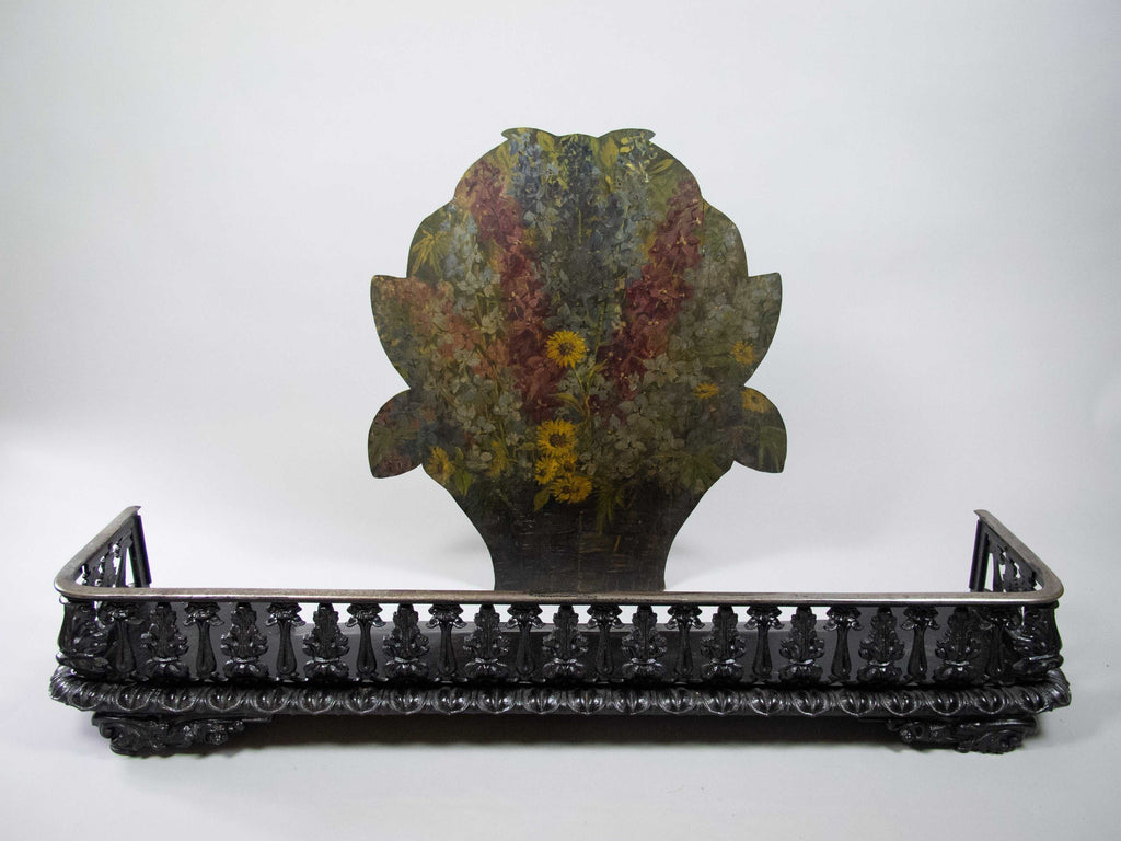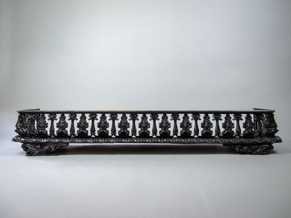 Large Victorian Cast Iron Fire Kerb With Pierced Foliate Design.
