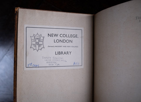 The sermon has been sympathetically rebound, incorporating the original board leather. Gilt stamped title to the spine. Library label to front pastedown and 'Hackney College Library' stamp to title page.